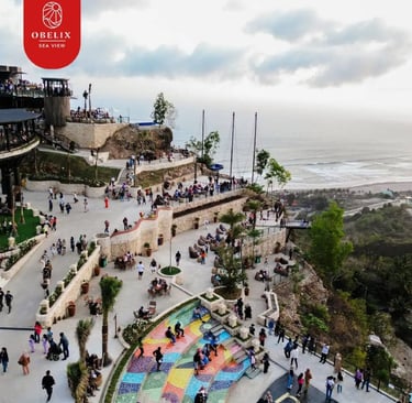 Obelix Sea View Jogja berada di dataran tinggi sehingga wisatawan akan disuguhi pemandangan pantai berwana biru. Selain itu, terdapat berbagai fasilitas yang dapat dinikmati wisatawan seperti spot foto menarik hingga kuliner di restoran ala Perancis.